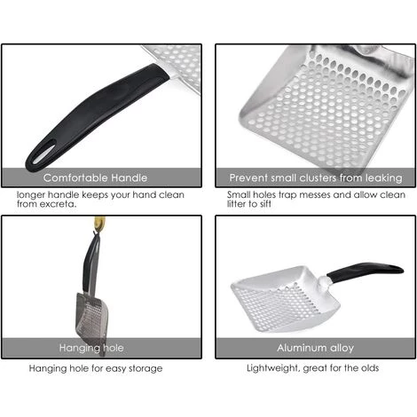 Taille parfaite – Pelle profonde avec des trous parfaitement espacés qui piègent les dégâts et permettent aux déchets propres de passer au crible; Taille (cm): 30 (L) x 14 (L) x 4 (H); Poids (g): 120