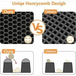 【Struct Double couche Structuret】 -Notre tapis de litière pour chat a deux couches: la couche supérieure est conçue avec un trou en nid d’abeille; La couche inférieure imperméable et antidérapante empêche l’urine de rester sur le sol pour garder votre sol propre. La litière et les ordures du chat tomberont dans le pore en nid d’abeille, ce qui empêche le chat de s’éloigner de la litière et de la poubelle. De plus, votre chat aimera la texture – ses griffes ne resteront pas coincées et il est d