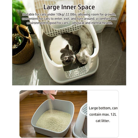 [Couverture supérieure ouvrable] La grande ouverture est plus facile pour le nettoyage des excréments de chat, pas de souci de faire des dégâts ; est également livré avec une pelle à litière pour chat pour le nettoyage, et la pelle peut être accrochée sur le côté de la boîte pour un rangement soigné.