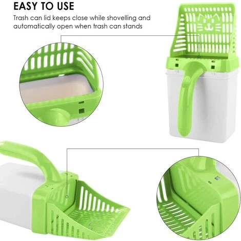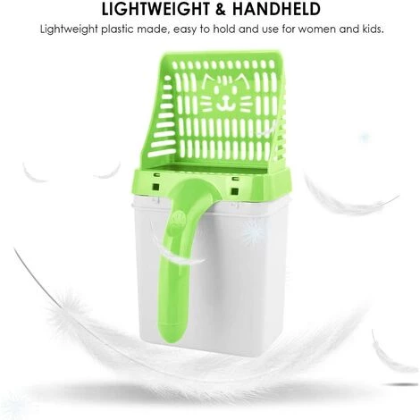 - 【DESIGN】- C’est une pelle à litière pour chat 2-en-1 avec sa propre poubelle. Nettoyez la litière et la litière plus rapidement et facilement. Robuste et durable, facile à nettoyer, durable.