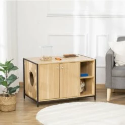 Maison Pour Chat, Meuble Litiere De Toilette Chat, Avec Crochets, HOOBRO EBF05MW01 – Marron Rustique