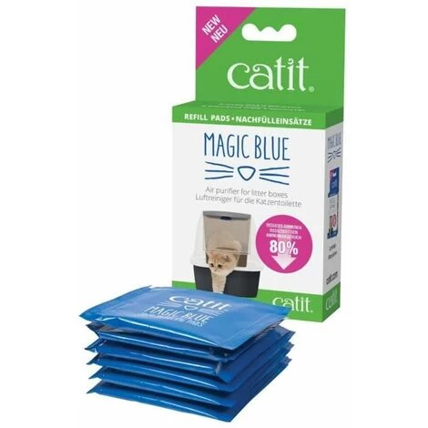 Sachet de rechange Magic Blue – Chaque sachet de filtration Magic Blue est protégé par une pellicule métallisée pour garantir un rendement optimal au moment de l’utilisation – Les sachets sont compacts, légers et non toxiques – Ils sont vendus en paquet de six assurant une efficacité de trois mois – Pour bac a litiere.