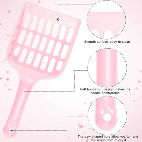 Facile à nettoyer: la surface lisse du bac à litière pour chat est pratique à nettoyer, il suffit de l’essuyer avec un chiffon humide ou de rincer à l’eau; Le trou en forme de patte vous permet d’accrocher la cuillère pour la sécher