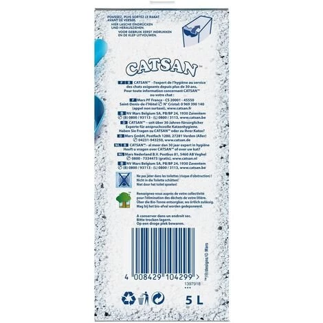 Les chats apprécient l’hygiène et la fraîcheur. C’est pourquoi ils aiment la litière CATSAN. Avec la litière CATSAN, vous êtes attentif aux besoins naturels de votre chat et lui offrez un bac à litière toujours propre et hygiénique. CATSAN – l’expert de l’hygiène au service des chats exigeants depuis plus de 30 ans.