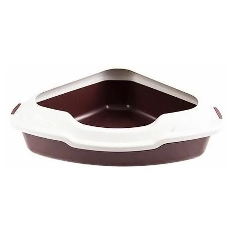 Bac à litière bordeaux. Sa forme permet de le disposer dans un angle de mur (parfait pour les petits espaces).