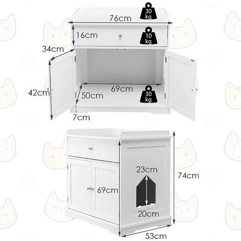 - Peut être utilisécomme box à litière pour chat, maison pour chat, table d’appoint, tabled’appoint, table de chevet