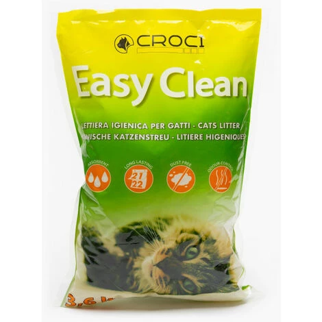 Easy Clean, le moyen le plus simple et le plus propre de résoudre les problèmes d’hygiène dans les toilettes de votre chat. est un produit naturel composé à 99% de silicium, absorbe l’urine de votre chat en grande quantité sans nécessiter l’enlèvement quotidien d’une partie de la litière, son pouvoir absorbant élevé est capable de déshydrater les fèces, tout le les causes de l’odorat sont vaincues. Peculiarita` du produit est sa simplicité de celui-ci à utiliser et à entretenir, l`assenza nonche` des problèmes de litière traditionnelle (la poussière, les zones humides où le chat se met à ses pieds après avoir laissé ses empreintes dans toute la maison, etc.).. Easy Clean est un produit sûr, toléré par tous les chats, y compris les chiots. Utilisation: remplissez la boîte à chat avec Easy Clean, retirez les excréments quotidiennement avec la palette appropriée et mélangez la litière. Remplacement: lorsque vous remarquez que le fond de la boîte est humide et que la litière devient jaune, remplacez-la. La durée varie en fonction de divers facteurs: de l’humidité de l’environnement et du nombre de chats qui l’utilisent