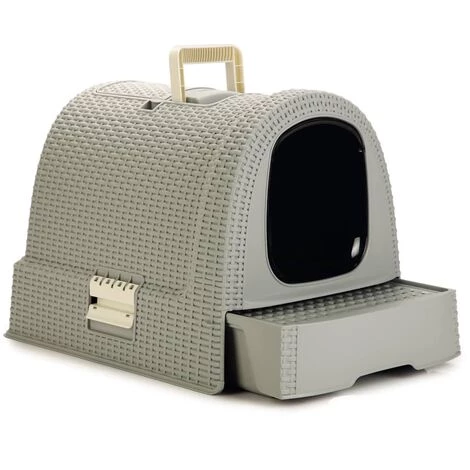 Le bac à litière pour chat de la marque Curver est un joli cadeau pour votre petit ami à fourrure. Ce bac à litière est fait de plastique tressé solide en forme de rotin.
