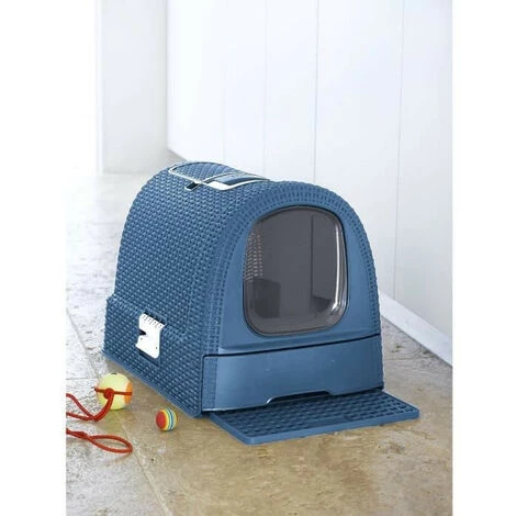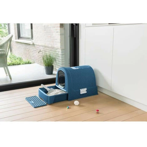 CURVER Maison De Toilette – Bleu Gris – Pour Chat – 51 X 38,5 X 39,5 Cm