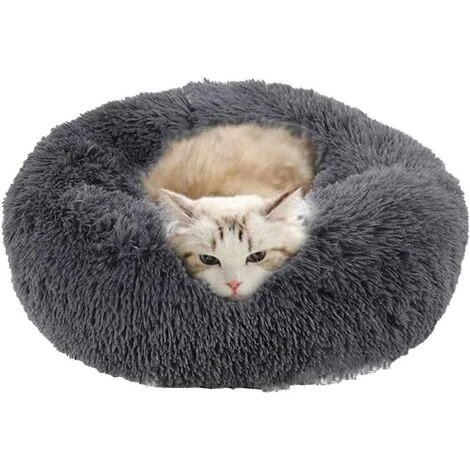 Lit pour animaux rond de luxe en forme de beignet avec peluches douces