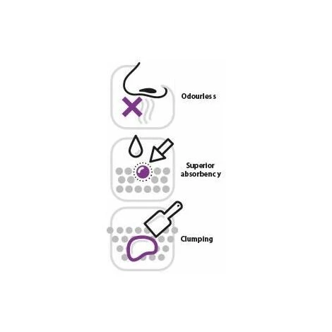 Silice Percato de haute qualité / Dimension: 3-10mm / 99% sans poussière, convient aux personnes et chats allerqiques / Litière légère / Effet durable / Neutralise les mauvaises odeurs / Un effet antibactérien / Absorbe lurine très vite /Biodégrable, car il est réalisé en 100% matières premières / Facile à utiliser