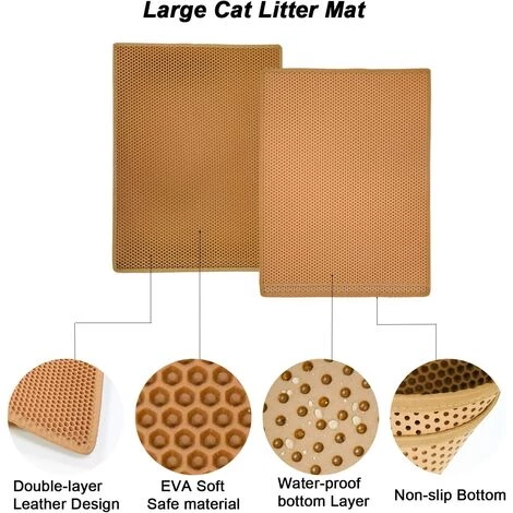 Tapis de litière pour chat en matériau EVA : fabriqué en caoutchouc mousse EVA léger, durable et respectueux de l’environnement. Matériau sain et doux, non toxique, insipide, ne causera aucun mal à votre chat ! Protégez les griffes de votre chat et votre chat aimera la sensation de marcher dessus.