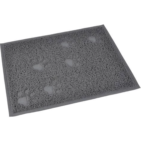 Ce tapis rectangulaire en PVC souple est pratique et fonctionnel. Il protège votre sol des projections de nourriture et d’eau lorsque votre animal mange grâce à ses petites boucles de plastiue qui retiennent les miettes. Il est étanche et se nettoie facilement à l’éponge ou à l’aspirateur. Son fond antidérapant garantie une prise de nourriture stable et évite que la gamelle ne bouge. Celui-ci est disponible en coloris noir et gris. . Convient également comme tapis de sortie de litière. . Vendu à l’unité