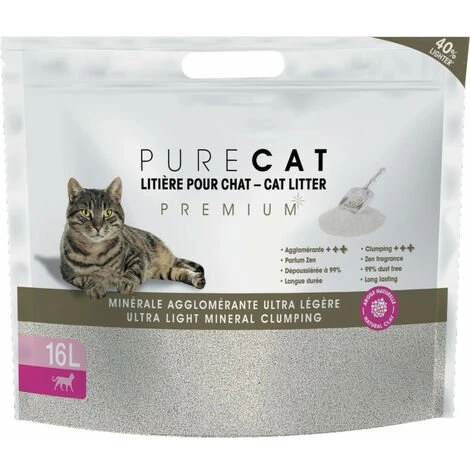 - Litière agglomérante minérale premium pour chat 16 Litres