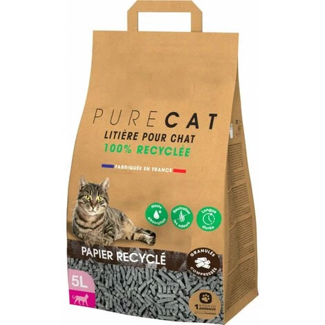- cette litière PureCat est fabriquée en France à base de 100 % de papiers recyclés, sans aucun additif