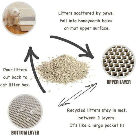 Empêche la dispersion des déchets. La conception en nid d’abeille à double couche vous permet de ramasser les déchets sur la couche supérieure et de passer à travers les trous jusqu’à la couche inférieure.