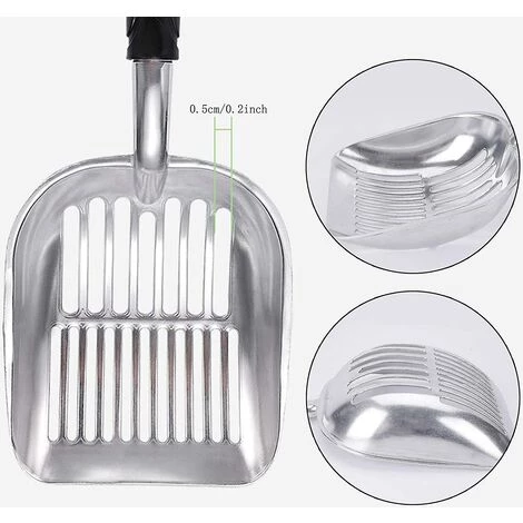 » Garder les chats est amusant et bénéfique, mais nettoyer la litière pour chat est une tâche difficile, c’est pourquoi nous avons rendu les soins aux chats beaucoup plus faciles. Notre pelle à litière pour chat antiadhésive profonde vous offre un bord avant plus large et peut être nettoyée dans les espaces restreints et les coins profonds. Facile à utiliser Cette pelle à litière pour animaux de compagnie est un outil idéal pour garder la poubelle propre. Avec cette pelle, vous pouvez facilement faire le travail, ce qui non seulement maintient votre maison plus hygiénique, mais empêche également l’odeur de durer trop longtemps. Avec lui, le nettoyage est maintenant plus facile. Matériau de haute qualité Fabriqué en alliage d’aluminium de haute qualité et en caoutchouc ergonomique, il n’est pas facile de se plier, de se casser et de rouiller, et est meilleur que la plupart des poubelles en plastique sur le marché. Cette pelle pour chat peut être utilisée pendant longtemps. Vous n’avez pas à vous soucier qu’il soit facile à casser, à réparer ou à rouiller. Manche en caoutchouc Manche en caoutchouc amélioré, cette pelle est très adaptée pour pénétrer dans les recoins et nettoyer plus efficacement les poubelles. La poignée ergonomique en caoutchouc est également très confortable. Facile à nettoyer Le revêtement antiadhésif et la surface lisse rendent la pelle à litière pour chat facile à nettoyer. Nettoyez-le simplement sous l’eau courante et votre pelle à ordures peut être réutilisée en quelques secondes. L’eau ou la litière pour chat ne rouilleront pas la pelle à litière pour chat. »