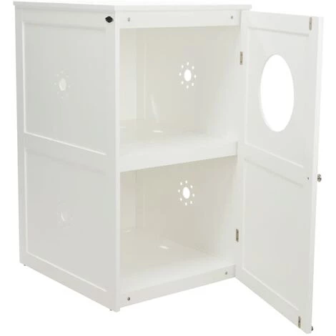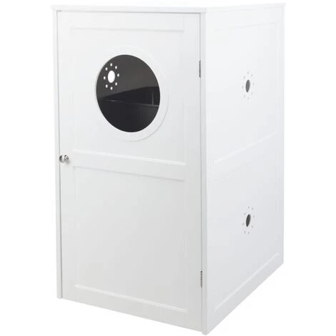 Cette maison à litière pour chat convient pour cacher une litière pour chat et empêcher la propagation. Elle possède un tapis de litière pour chat. Elle peut également être utilisée comme dortoir, ou le niveau libre peut être utilisé comme espace de rangement pour la litière et les ustensiles. L’entrée peut être installée à droite ou à gauche. Le trou d’entrée peut être placé soit en haut, soit en bas. Lorsque vous placez le trou en haut, il est facile de nettoyer le bac à litière pour chat au niveau supérieur. Le trou d’entrée en haut facilite le nettoyage du bac à litière pour chat au niveau supérieur avec une porte dotée d’une fermeture magnétique.