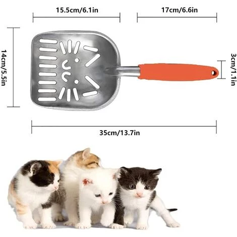 【Excellente Conception】: La pelle à litière pour chat est constituée d’un corps en alliage d’aluminium solide et d’une poignée ergonomique moulée en caoutchouc, durable et confortable pour une utilisation fréquente, d’une durée de vie plus longue que celles en plastique.