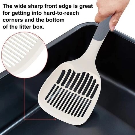 Matériau : notre spatule pour chat est fabriquée en plastique PP recyclé épais, qui est solide, respectueux de l’environnement, de haute ténacité et sans goût. Les côtés incurvés et les coins arrondis empêchent la litière de tomber.