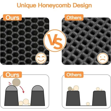 - Le meilleur tapis litiere chat pour ramasser la litière : Ce tapis chat litiere vous aide à attraper la litière éparpillée pour chat afin qu’elle ne colle plus à vos pieds et que vous deviez nettoyer votre sol tous les jours ! Notre tapis pour chat est assez grand pour couvrir la zone d’entrée du bac à litière et les trous en forme de nid d’abeille sont extra larges pour attraper tout type de litière pour chat. Taille: 58*42*1cm