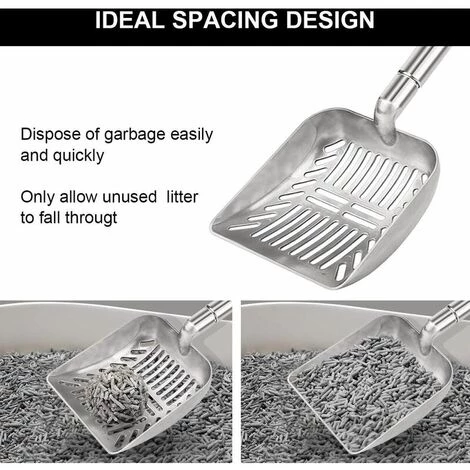 Robuste et durable : fabriqué en acier inoxydable de haute qualité, résistant à la corrosion, très durable. Ne se plie pas, ne se fissure pas, ne pèle pas et ne rouille pas. Facile à nettoyer : les fentes vides séparent la litière propre tout en gardant le volume sur la pelle, qu’il s’agisse de grosses touffes ou de touffes, la litière pour chat se nettoie facilement. La surface lisse le rend très facile à nettoyer, il suffit de l’essuyer ou de le nettoyer avec de l’eau. Multifonctionnel : notre outil de nettoyage pratique sert tous vos animaux de compagnie, tels que les chats, les chiens et autres animaux de compagnie. Avec ce scoop en main, vous pouvez faire le travail, garder votre maison plus hygiénique et empêcher les mauvaises odeurs de persister trop longtemps. POIGNÉE RÉGLABLE: La longueur de la poignée est réglable de 23 cm à 40 cm, structure spéciale à longue poignée pour tout travail sans se pencher. Taille : taille du seau : 15 x 14 x 5 x cm, longueur de la poignée : 23-40 cm. Contenu de l’emballage : 1 pelle à litière pour chat. Grande surface de ramassage, haute efficacité. En cas de problème avec notre produit, n’hésitez pas à nous contacter. Nous ferons de notre mieux pour vous aider à résoudre le problème. Description du produit Nom du motif : bac à litière 1.Cette pelle à litière est l’outil parfait pour nettoyer le bac à litière. Avec ce scoop en main, vous pouvez faire le travail, garder votre maison plus hygiénique et empêcher les mauvaises odeurs de persister trop longtemps. 2. Haute qualité. Ne se plie pas, ne se casse pas, ne pèle pas et ne rouille pas. 3. Structure spéciale à long manche pour tous les travaux sans se baisser. Il est confortable à tenir et plus facile à saisir, gardant votre main loin de la litière souillée. 4. La surface lisse le rend très facile à nettoyer, il suffit de l’essuyer ou de le nettoyer avec de l’eau. 5. Grande surface de dragage, haute efficacité. Peut être utilisé pour nettoyer la litière pour chat, mais aussi comme outil de jardin et truelle. Caractéristiques : Matériau : acier inoxydable de haute qualité Couleur : argent Poids : environ 0,35 kg Taille : Taille du seau : 15*14*5*CM Longueur du manche : 23-40CM Emballage inclus : 1 x pelle à litière