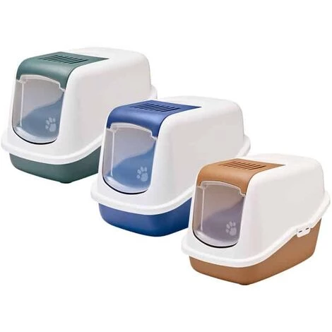 Jolie toilette pour chat avec face avant amovible pour la facilité du nettoyage.