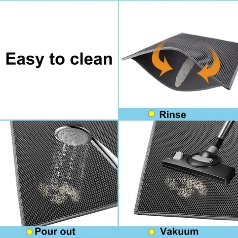 Conception unique : le tapis de litière pour chat en nid d’abeille à double couche est conçu pour vous aider à ramasser la litière pour chat. Il vous suffit de ramasser le tapis de litière pour chat et toute la litière pour chat tombera. Ensuite, remettez-le dans le bac à litière pour le réutiliser.